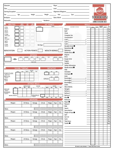 Read Online d20 modern character sheet fillable Kindle Editon